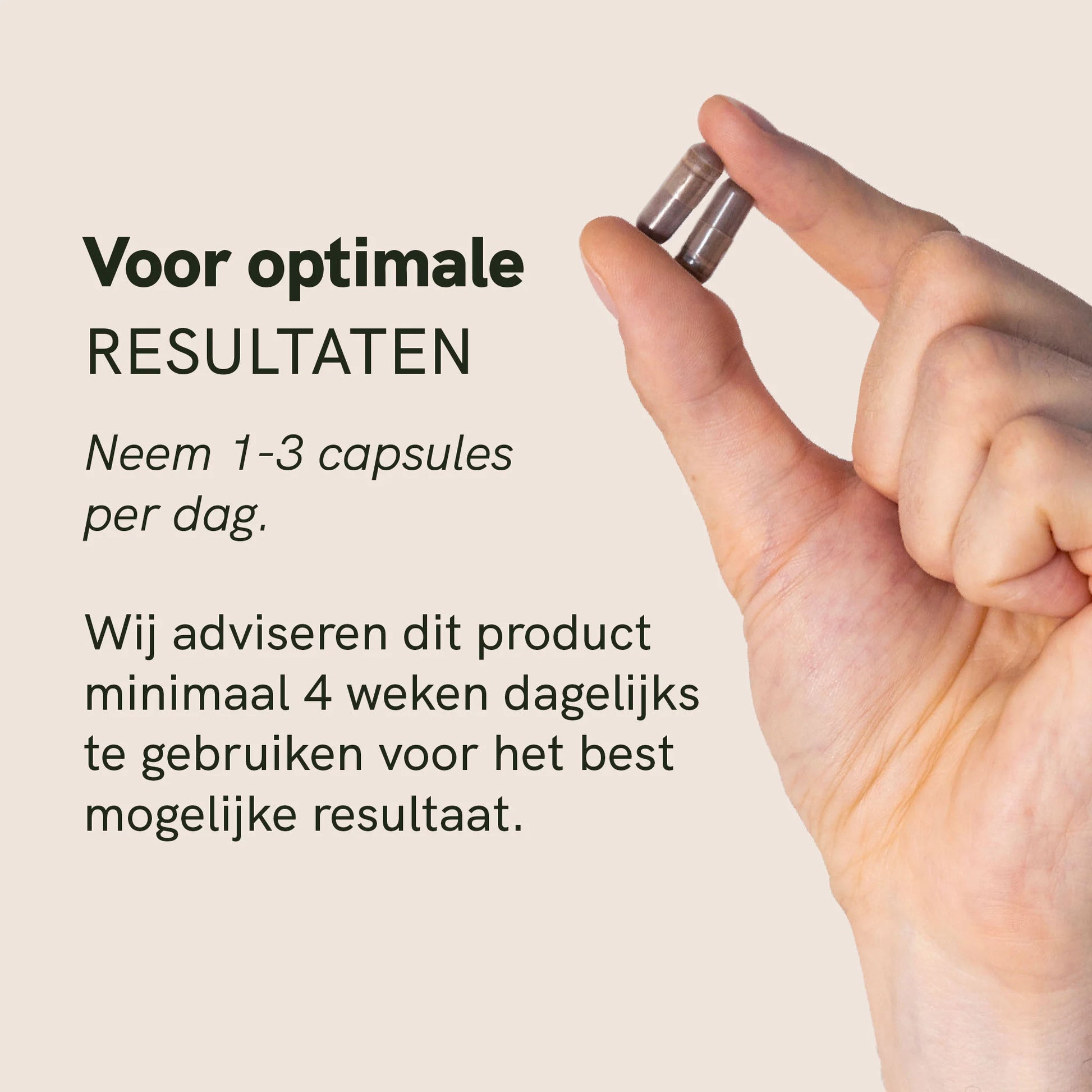 Neem 1-3 capsules per dag met een glas water, tenzij anders geadviseerd door uw zorgverlener. De aanbevolen dagelijkse dosering niet overschrijden.