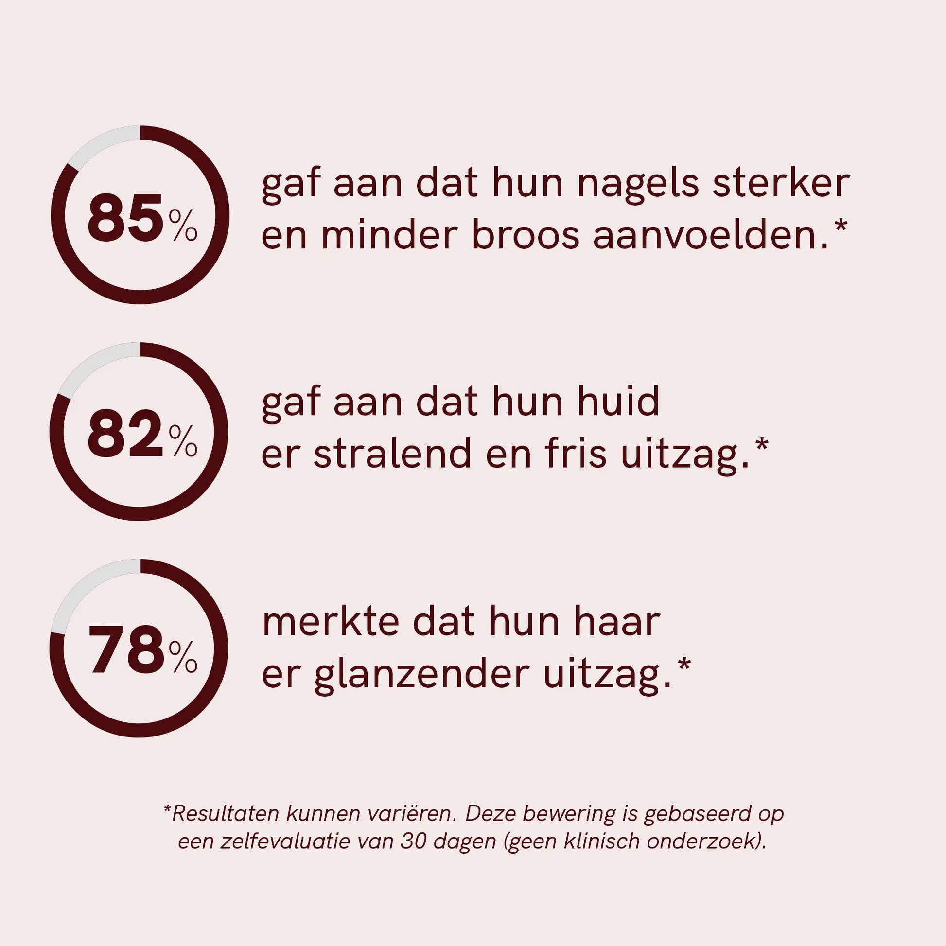 Ontworpen om moeiteloos in uw dagelijkse routine te passen, zijn onze Huid, haar en nagels Gummies een heerlijk self-care moment, gemaakt voor iedereen die er elke dag op zijn best uit wil zien en zich goed wil voelen.