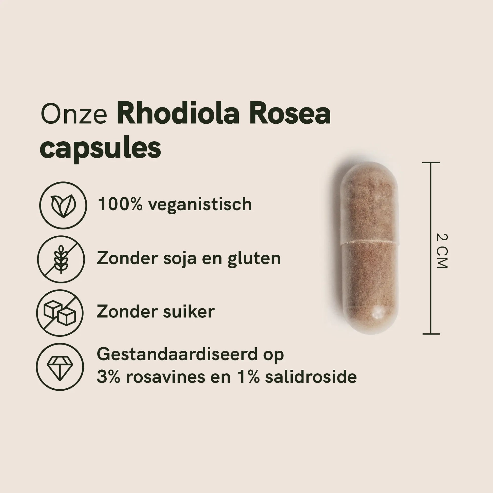 - Rhodiola rosea extract van hoge kwaliteit met 3% rosavin & 1% salidroside